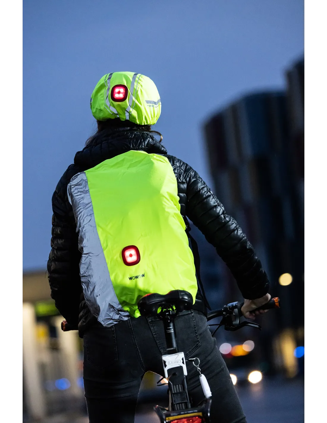 La housse de pluie pour casque de vélo Corsa Led de WOWOW est un indispensable pour toutes les cyclistes et vélotafeuses qui souhaitent se protéger de la pluie et assurer leur visibilité.