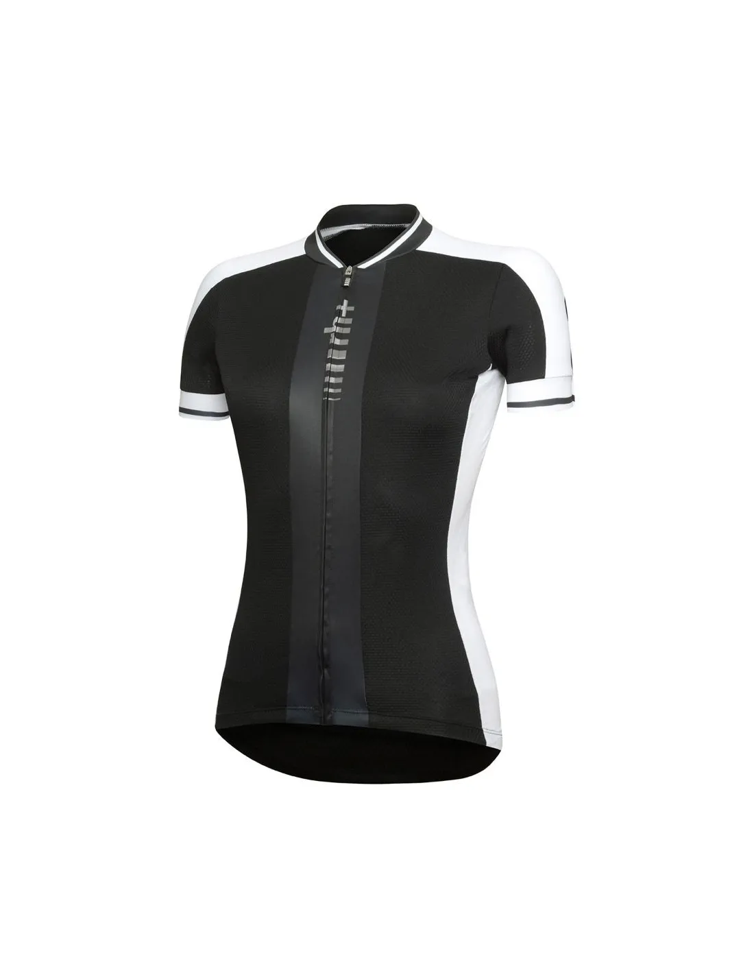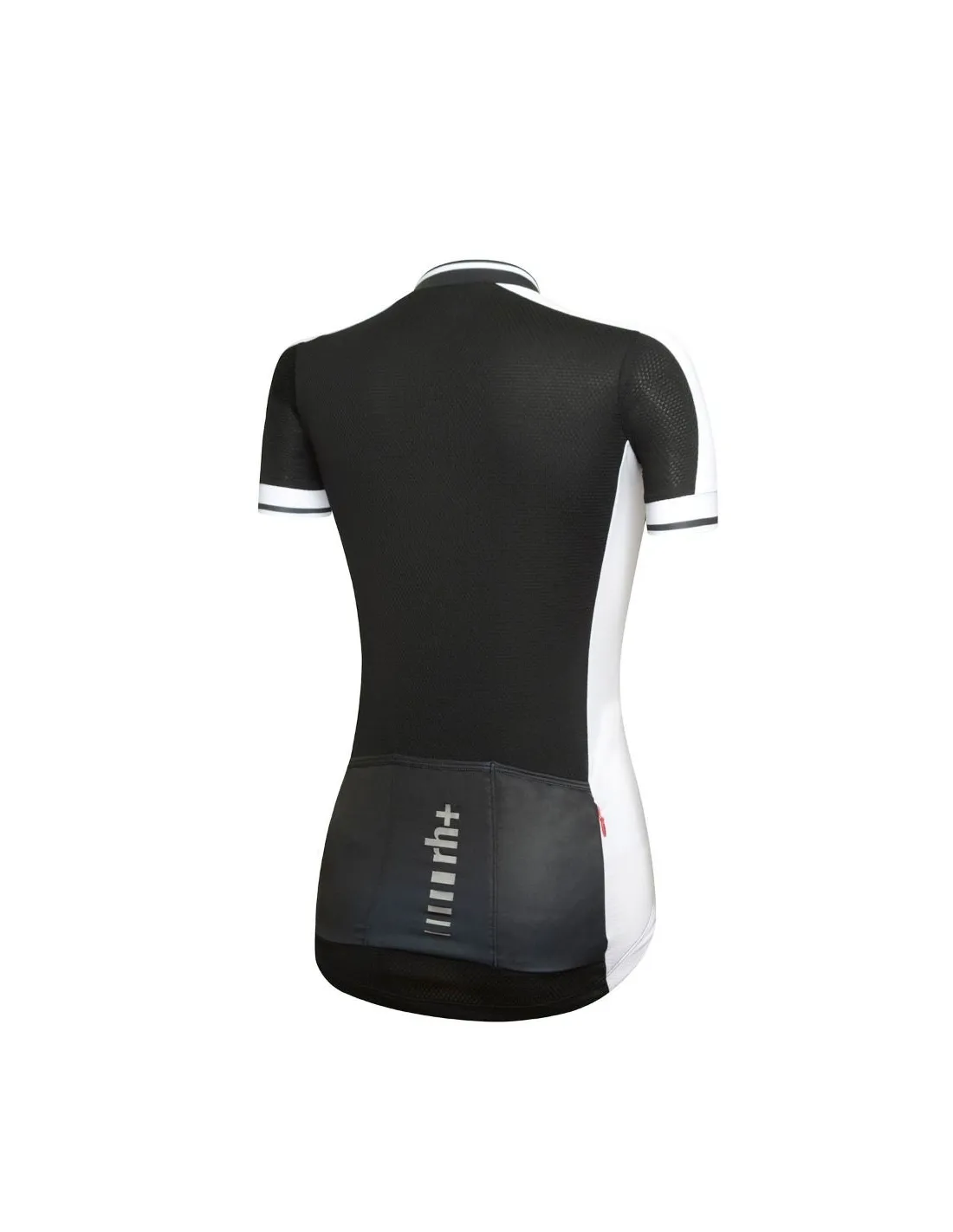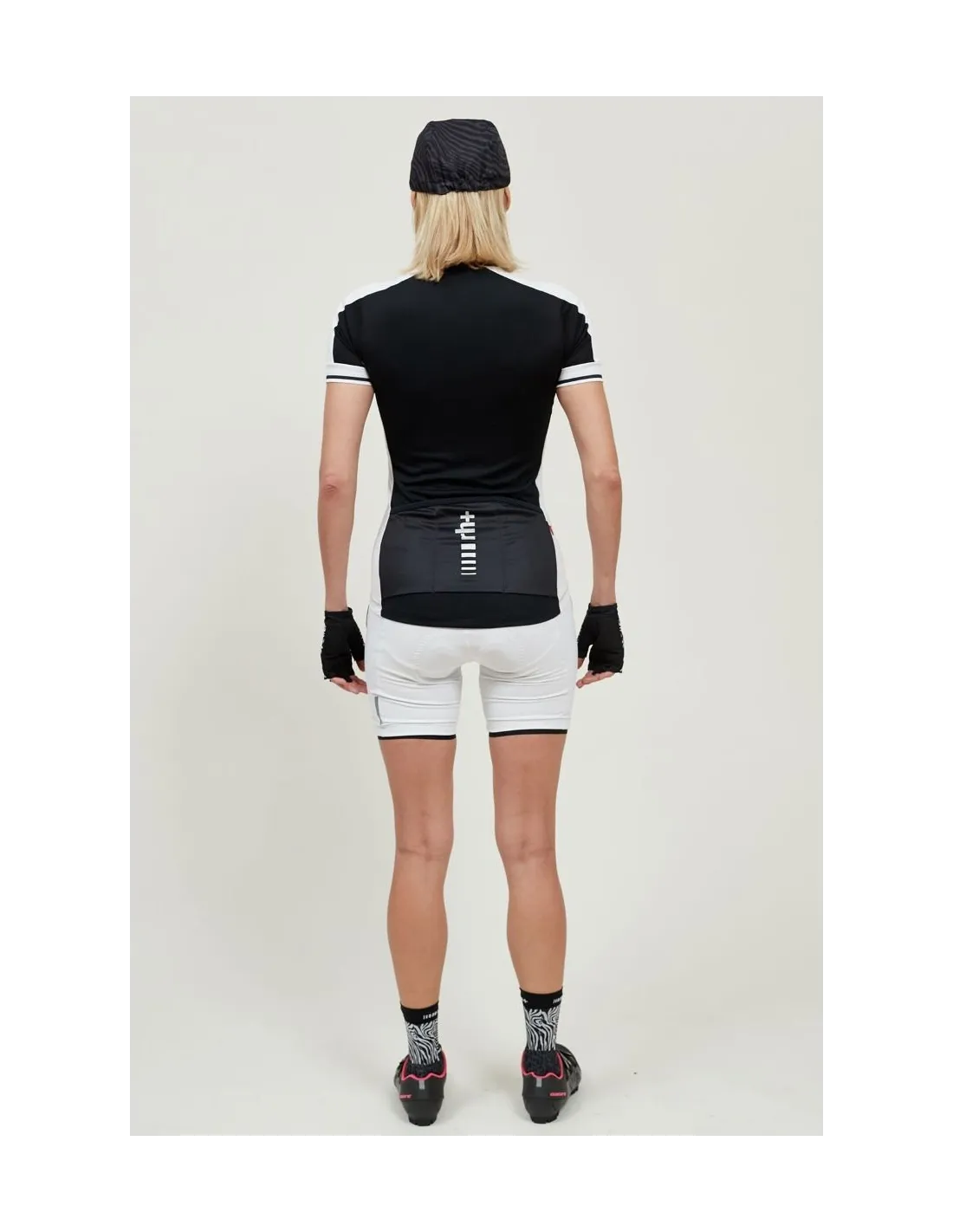 Le maillot de vélo femme ROADIE Zero RH+ utilise différents tissus pour apporter un excellent confort pendant les fortes chaleurs. Composé principalement d’un tissu léger et respirant, il s’adapte à tous vos mouvements et régule parfaitement la température corporelle grâce à une parfaite évacuation de l’humidité. Autour du zip, sur les épaules et les côtés, différents empiècements extensibles viennent accentuer le confort et transformer ce maillot en véritable seconde peau. Le tissu de ce maillot apporte également une protection UV vraiment pratique en période estivale et son design noir et blanc apportera une petite touche d’élégance à votre look de cycliste.