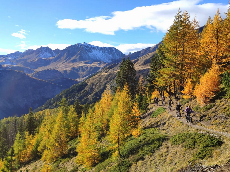 Une fois arrivées au sommet, place à la descente spectaculaire ! Préparez-vous à vivre un moment mémorable, avec une ambiance minérale et sauvage. Nous traverserons une grande variété de paysages : haute montagne, alpages, forêts de mélèzes… Et bien sûr, des terrains variés : épingles serrées, portions ultra-rapides, marches techniques. Ce sera l'occasion de mettre en pratique toutes les compétences acquises et de profiter à fond de la beauté des lieux.