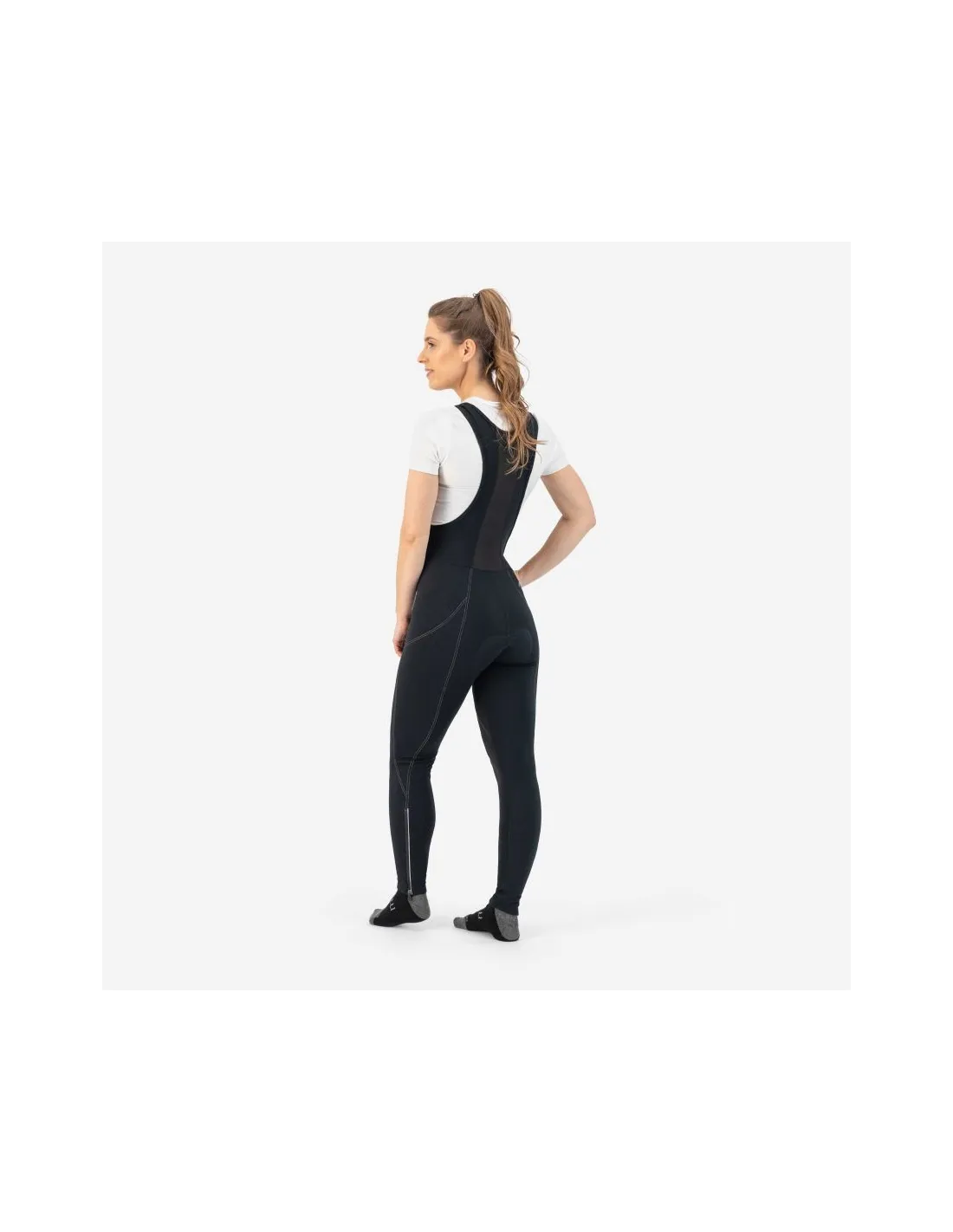 Ce bib cycliste long femme a des fermetures éclair aux extrémités des jambes pour le mettre et l'enlever plus facilement.