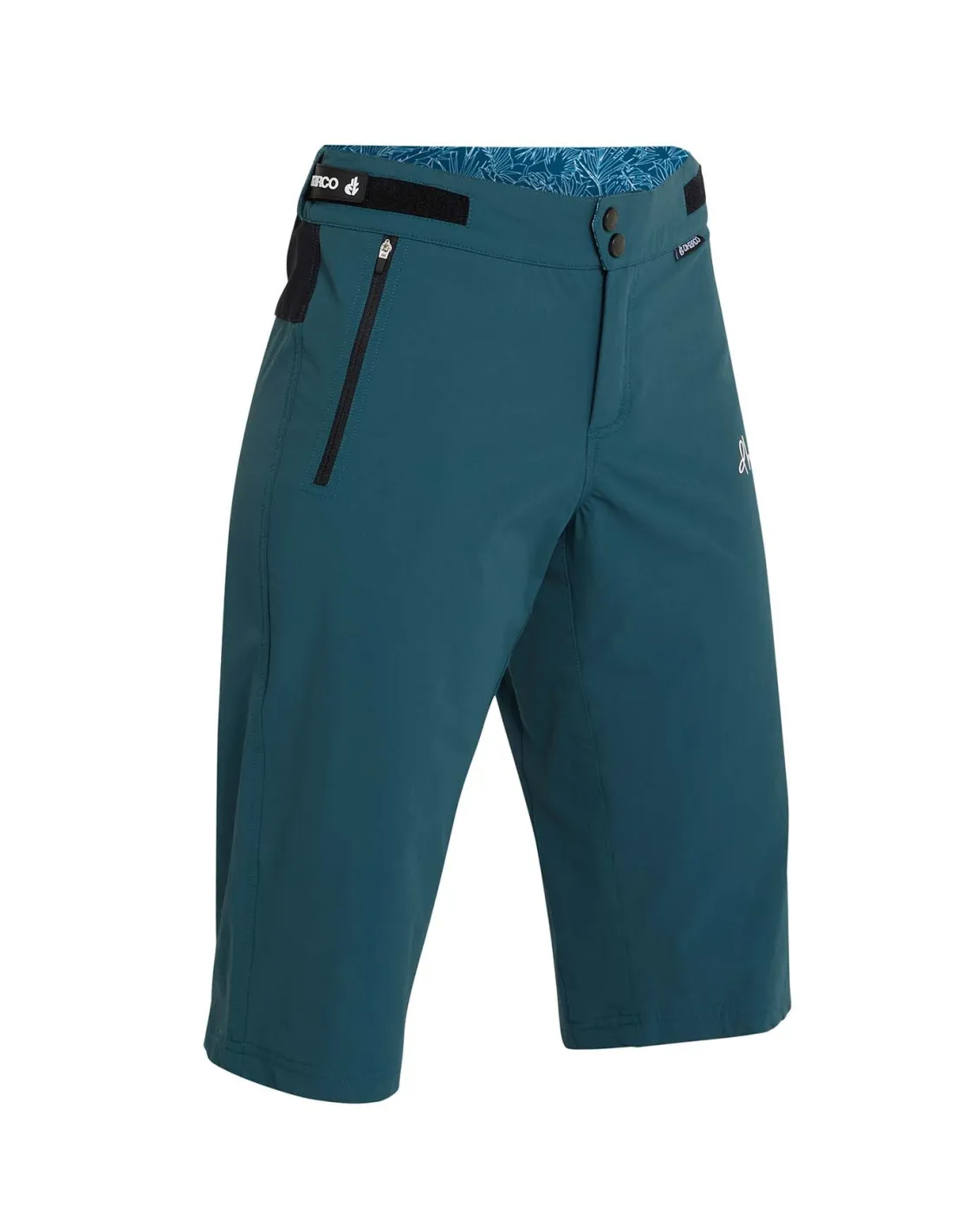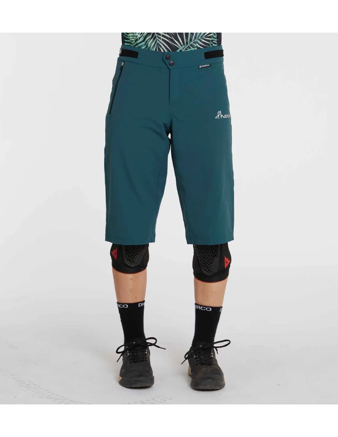 Le short de VTT pour femme Forest de chez Dharco se révélera vite comme étant la pièce maîtresse de votre équipement de VTT. Son imprimé vert se mariera parfaitement avec le maillot Dust Till Dawn de la marque australienne pour apporter une touche d'originalité à votre tenue de vélo.