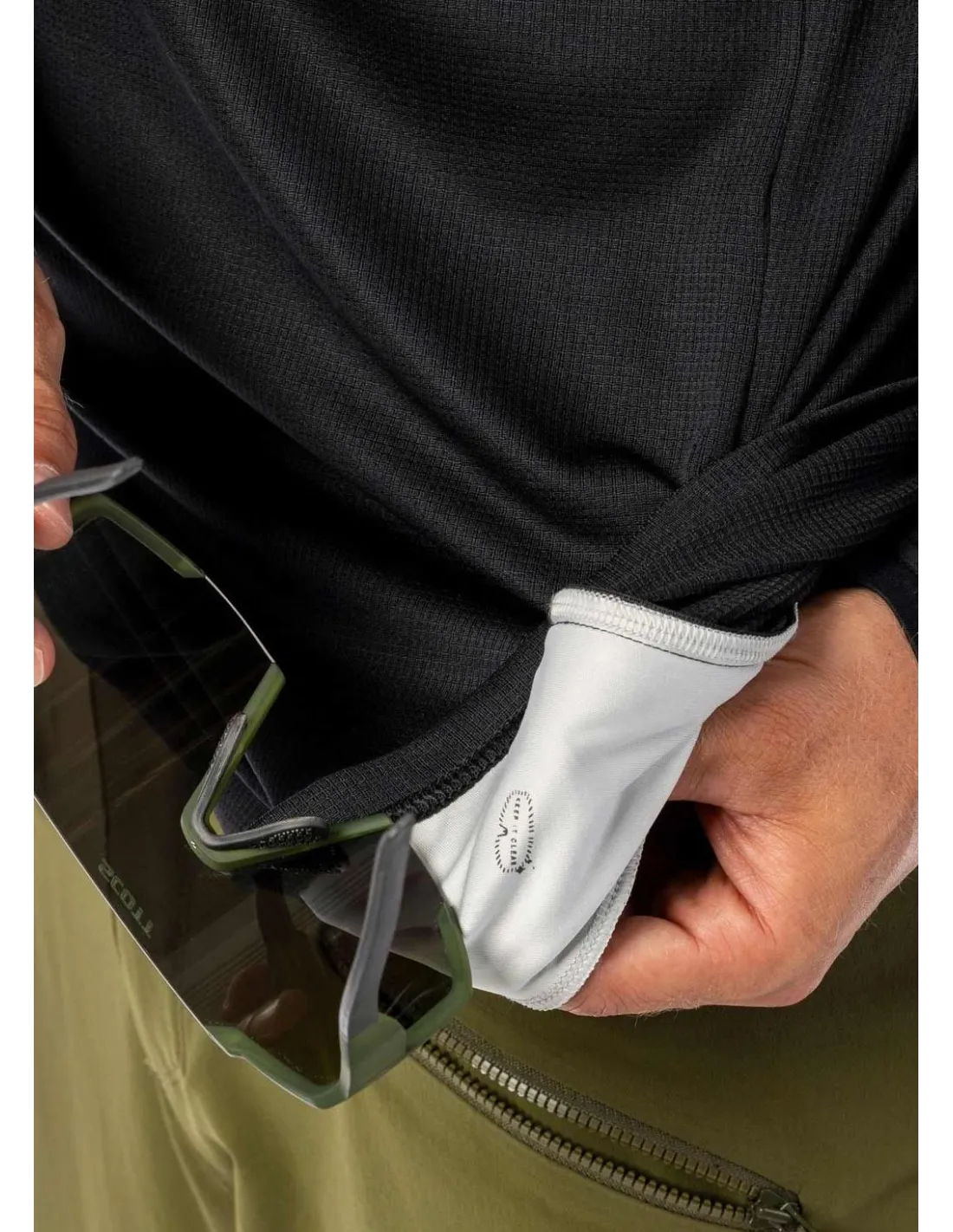 Ce maillot dispose également d'une poche latérale zippée pratique pour garder vos essentiels en sécurité et d'une lingette intégrée au dos de cette poche pour essuyer masques et lunettes, le top pour nettoyer vos verres en un clin d'œil.